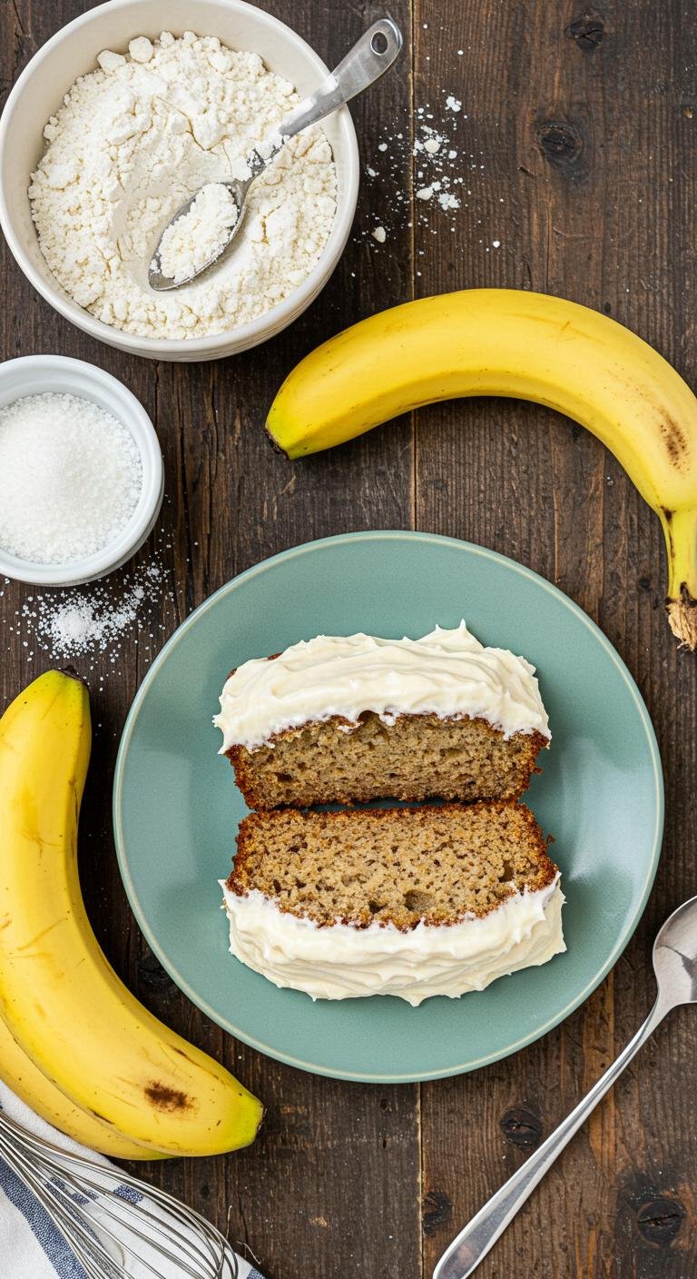Indulge in a slice of moist banana bread topped with luscious cream cheese frosting—it’s the perfect sweet treat for any occasion!