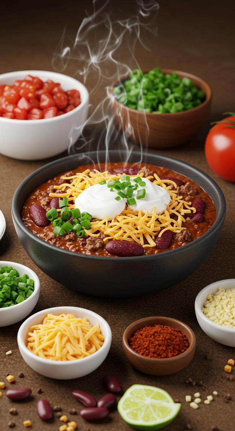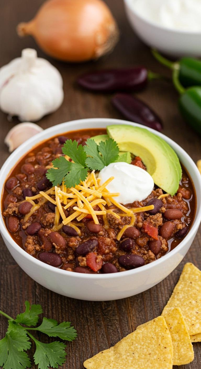 Enjoy a bowl of hearty, delicious chili that warms the soul and satisfies your cravings!