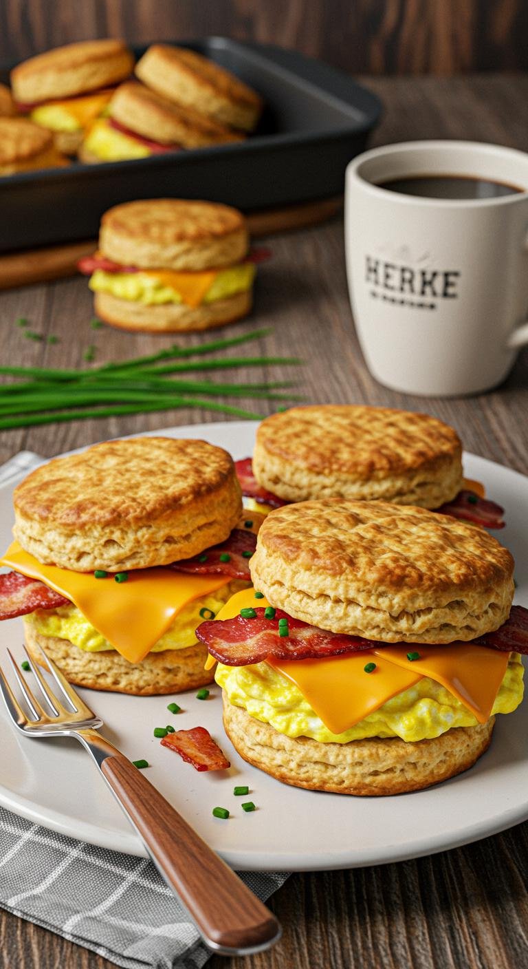 Enjoy these delicious Bacon and Egg Breakfast Biscuits as a hearty start to your day!