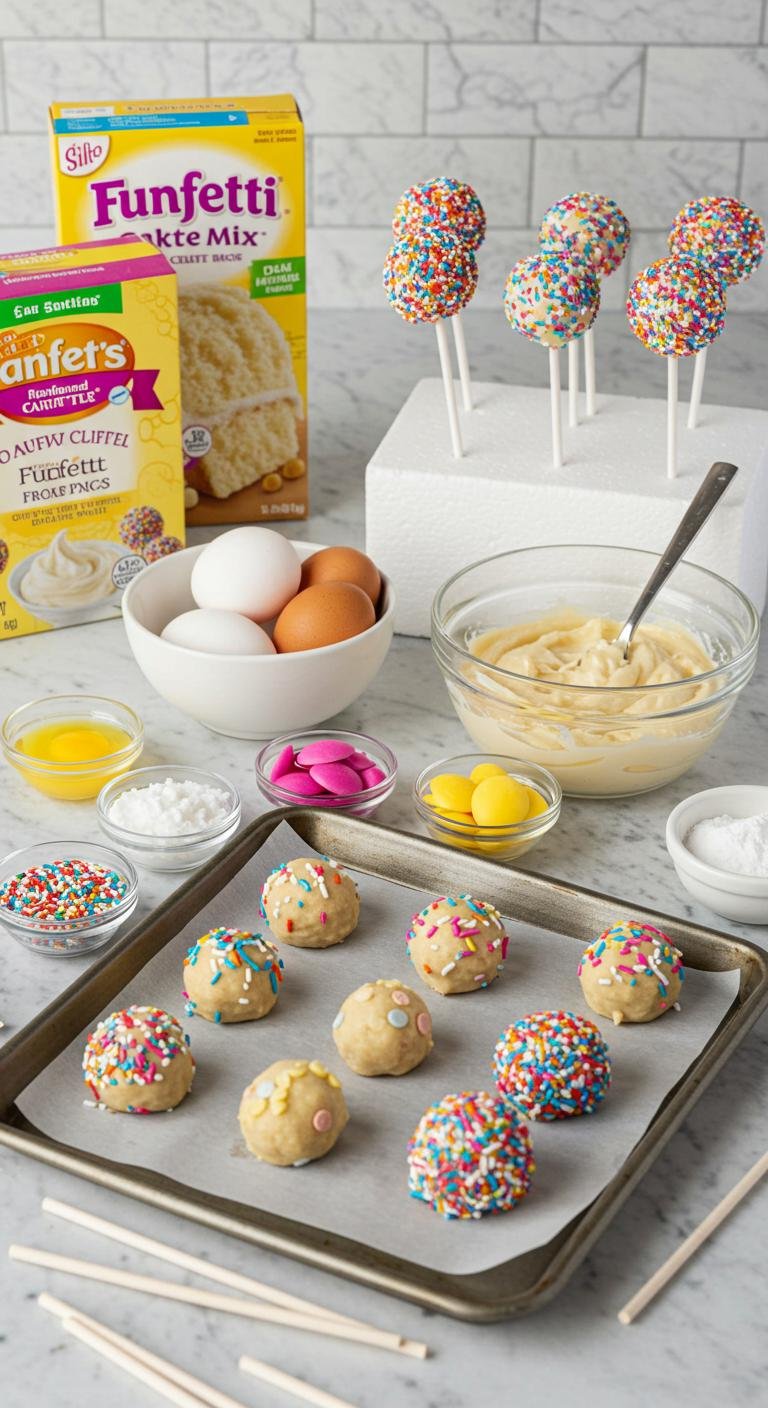 Rainbow Sprinkle Funfetti Cake Pops