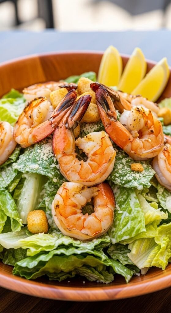 Elevate your classic Caesar salad with a delightful twist of succulent shrimp!