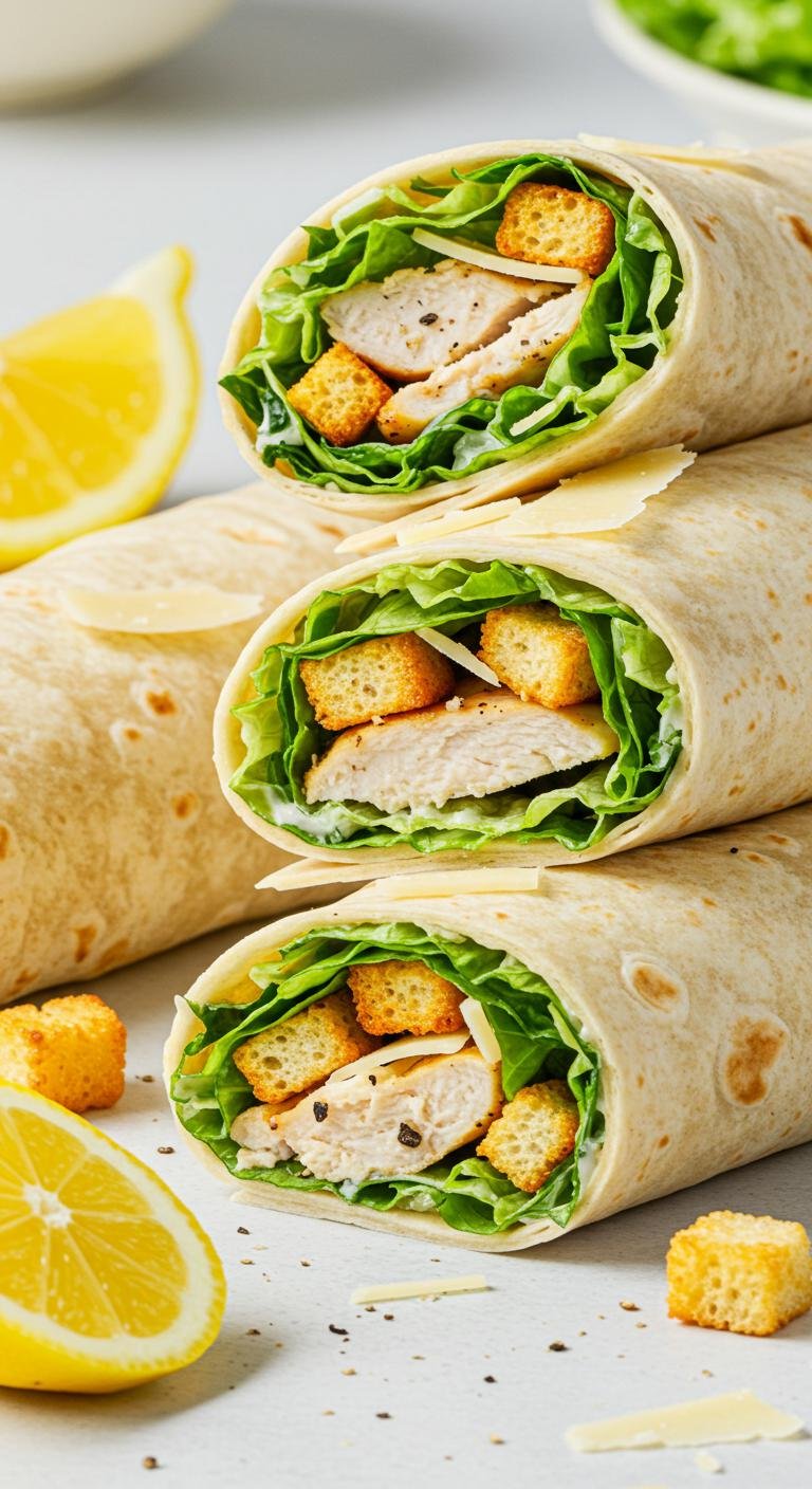 Enjoy these wraps as a fresh, portable twist on a classic Caesar salad!