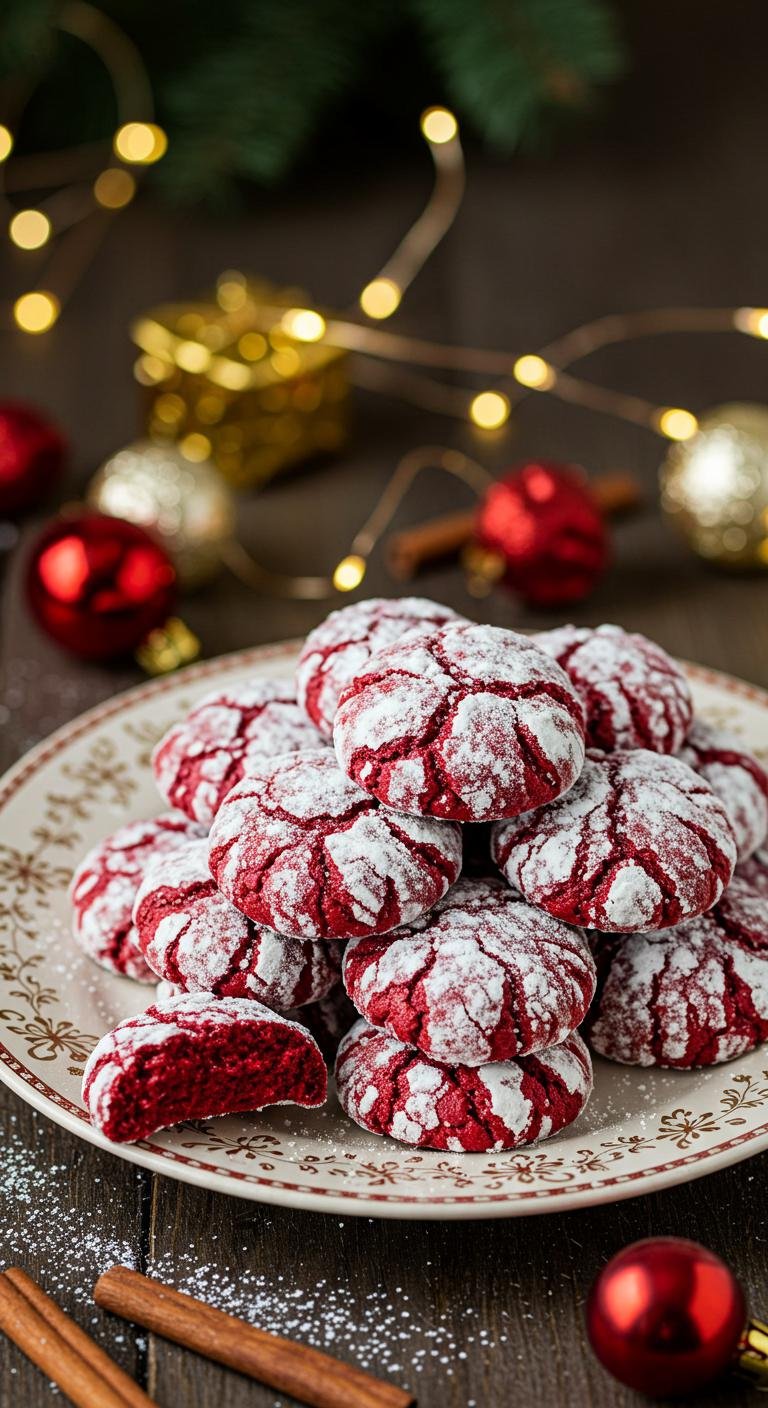 Indulge in the festive delight of Red Velvet Crinkle Cookies, where classic red velvet meets the perfect crinkle!
