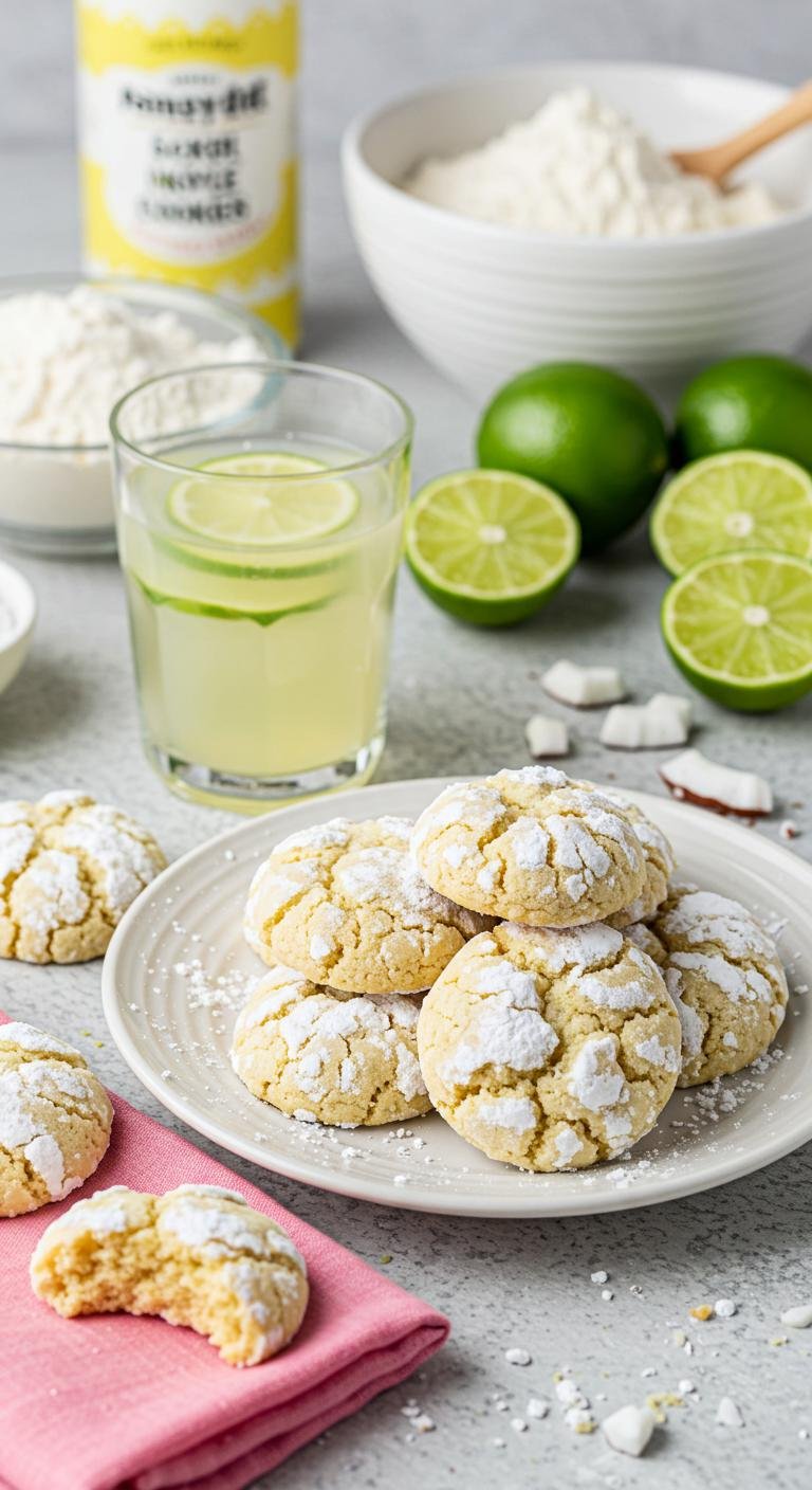 Enjoy these delightful Coconut Lime Crinkle Cookies with a invigorating glass of lemonade – they’re sure to brighten your day!