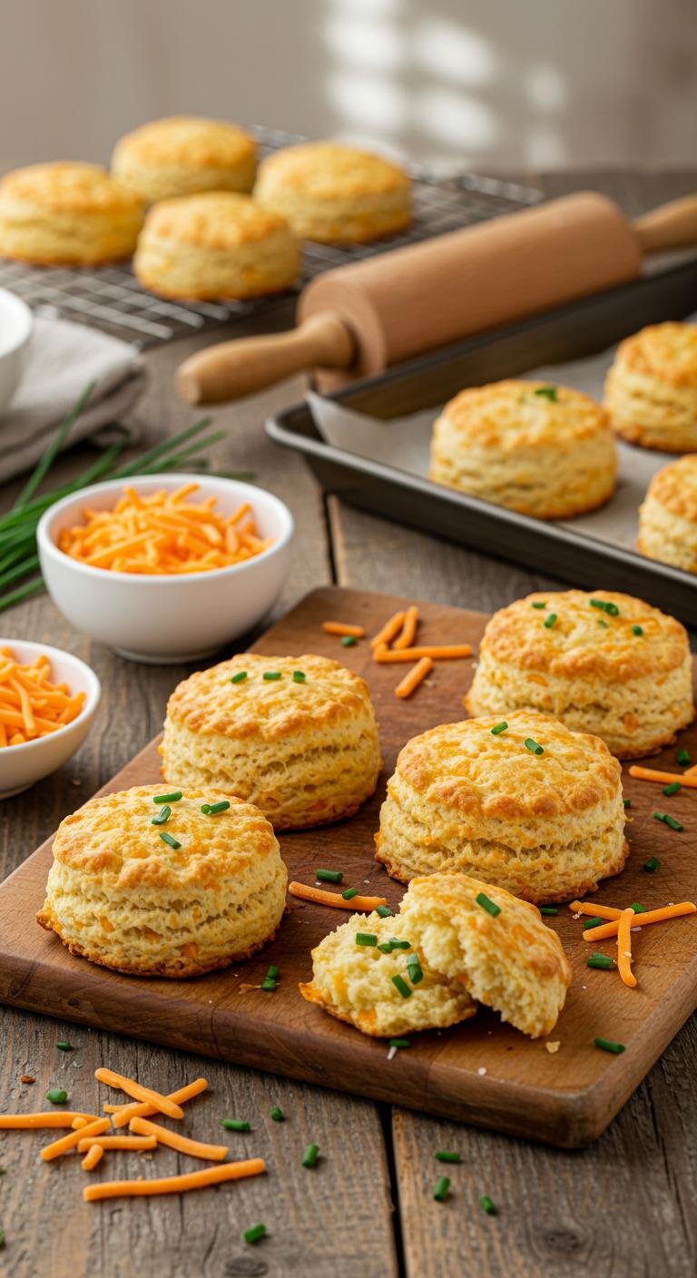 Cheddar and Chive Biscuits: Flaky, cheesy goodness in every bite!