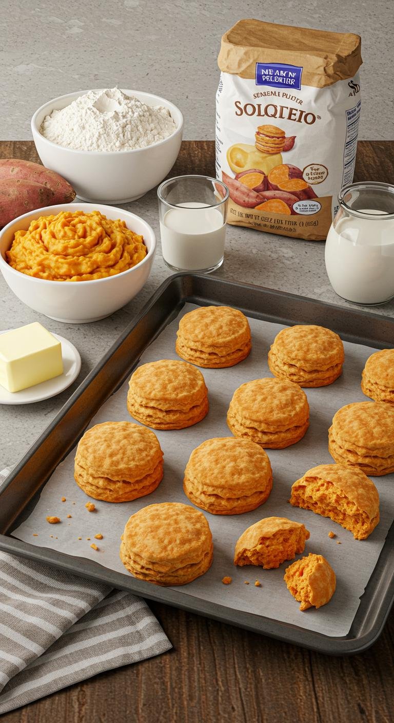 Enjoy these delightful sweet potato biscuits warm, slathered with butter or your favorite jam!