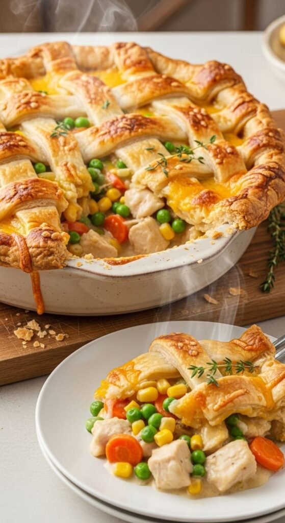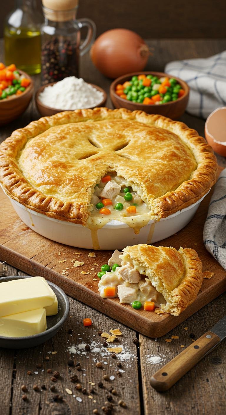 Enjoy the warmth and homeliness of a classic chicken pot pie that’s sure to become a family favorite!