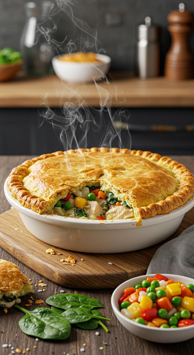 Savor the comforting goodness of Chicken and Spinach Pot Pie, a delightful twist on a classic favorite!