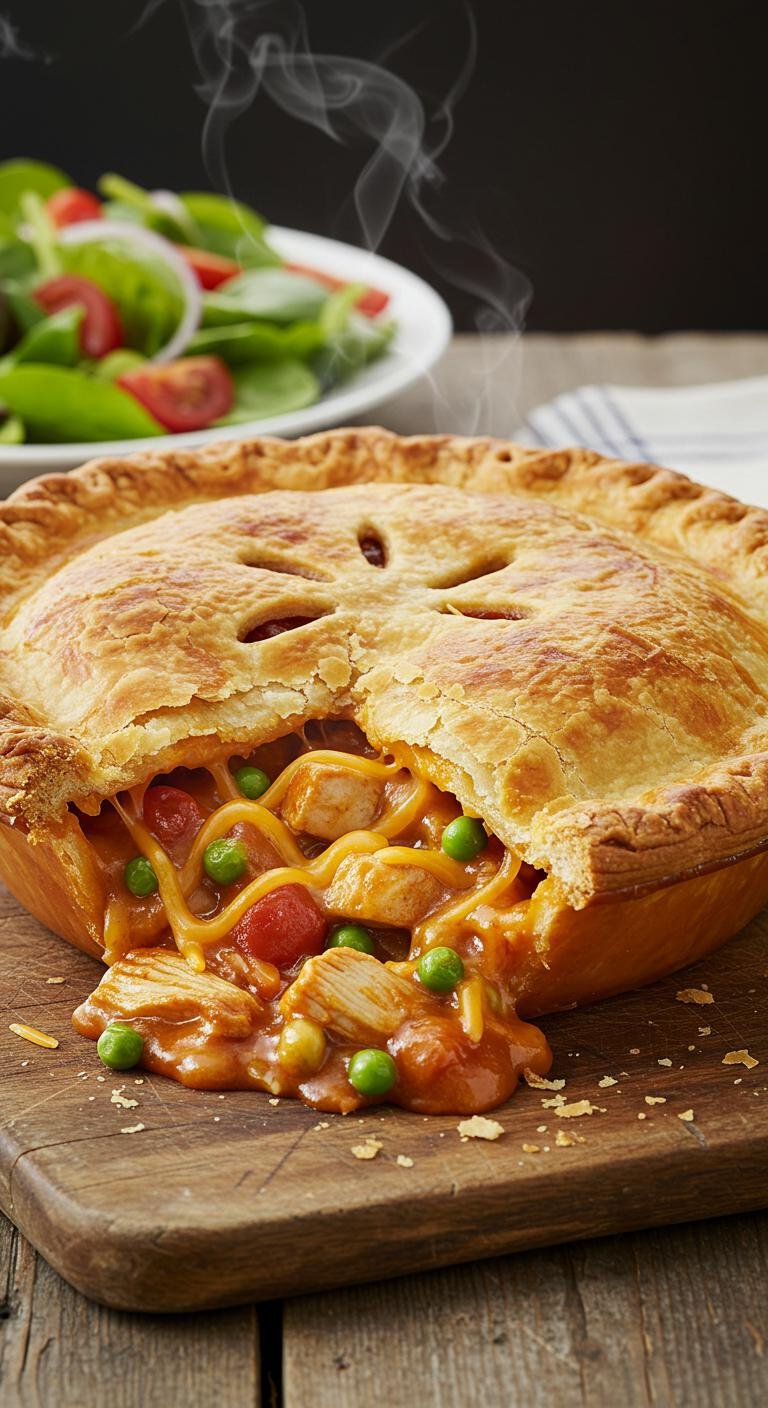 Indulge in a comforting classic with a twist—this Cheesy Chicken and Veggie Pot Pie is a warm hug in a flaky crust!