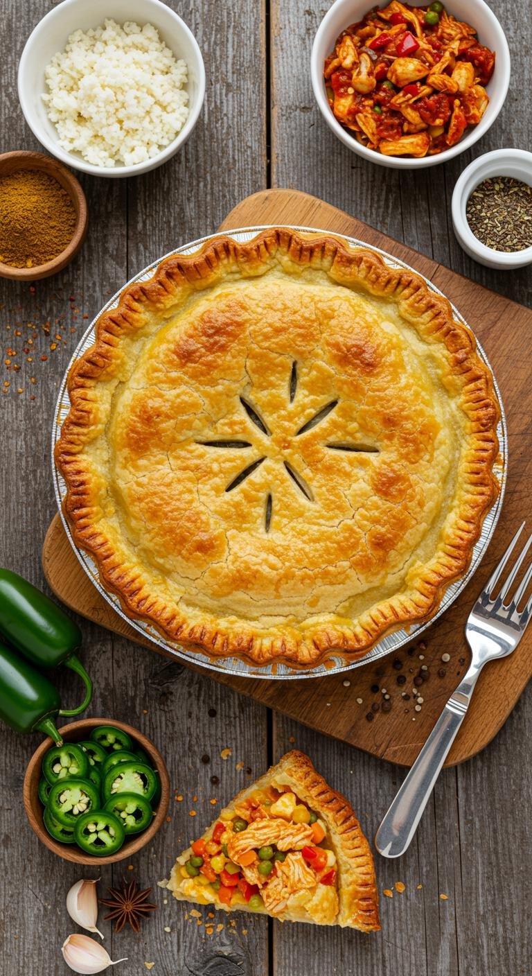 Spice up your dinner with this zesty Spicy Chicken Pot Pie featuring jalapeños!