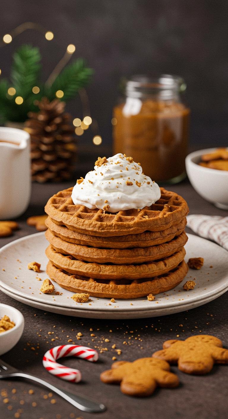- Serve your gingerbread waffles warm, topped with a generous dollop of whipped cream and a sprinkle of crushed gingerbread cookies if desired.