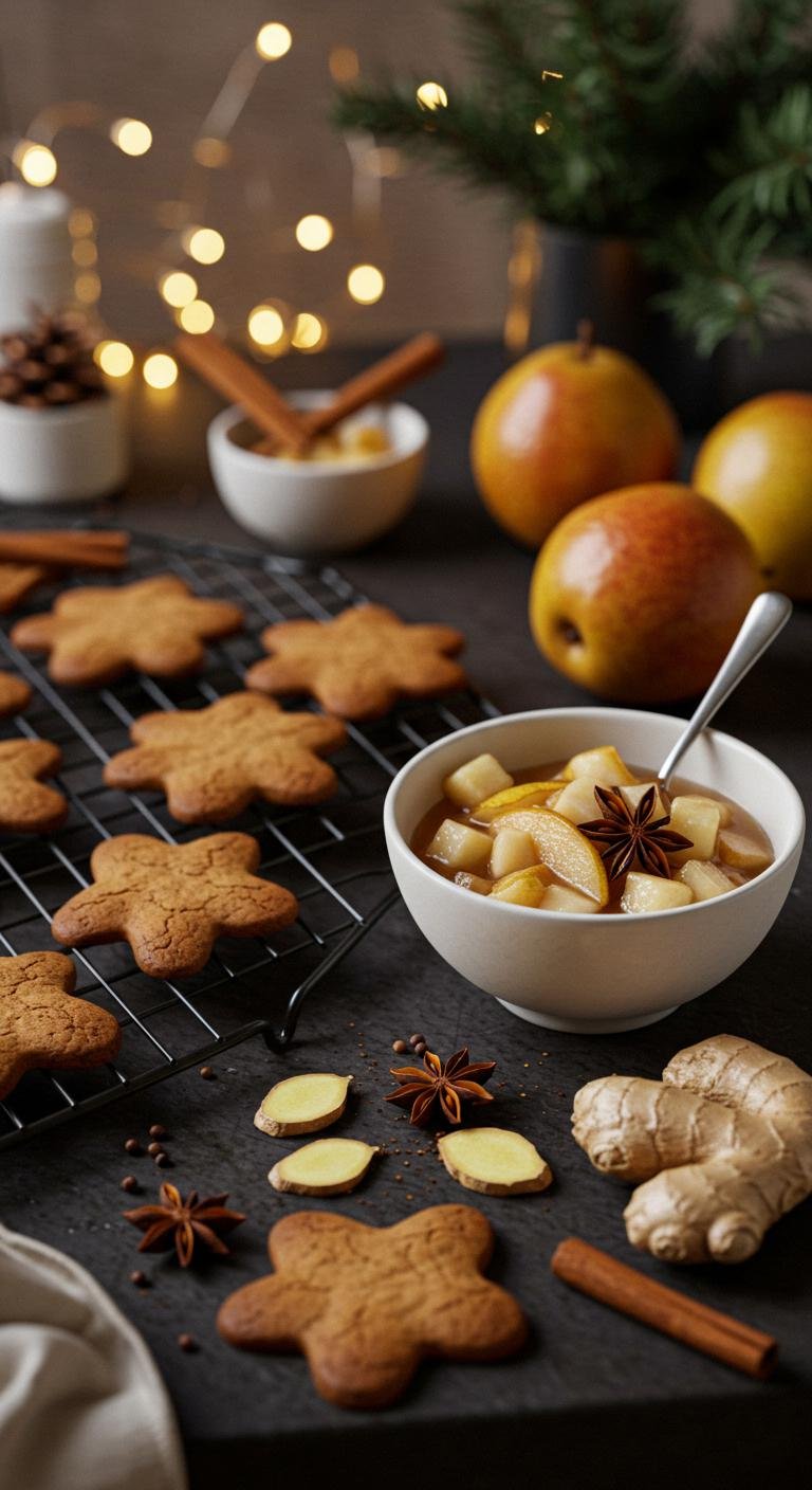 Gingerbread Cookies With Pear and Ginger Compote