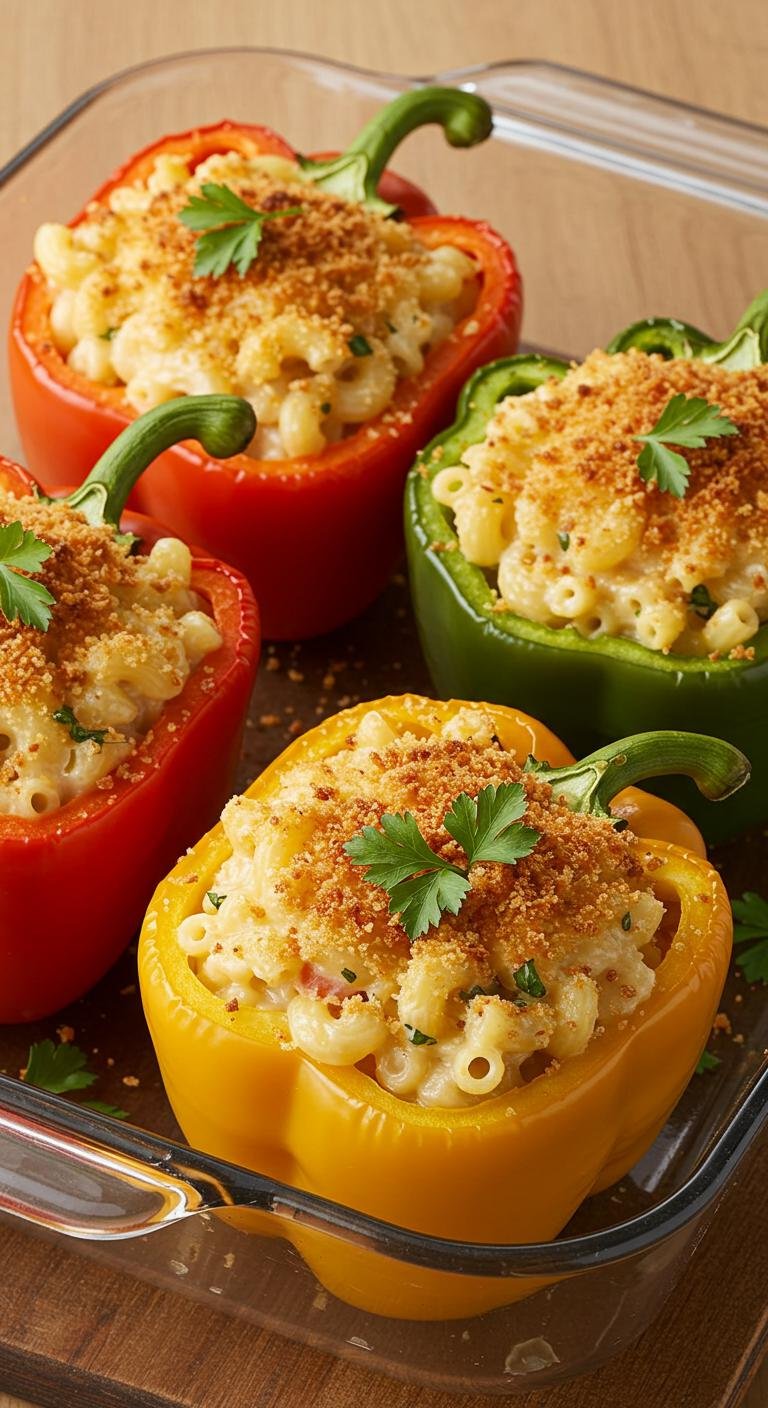 Dig into these fun and flavorful mac and cheese stuffed peppers for a meal that’s both comforting and creative!