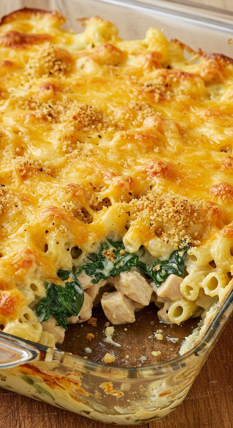 Mac and Cheese Casserole With Chicken and Spinach