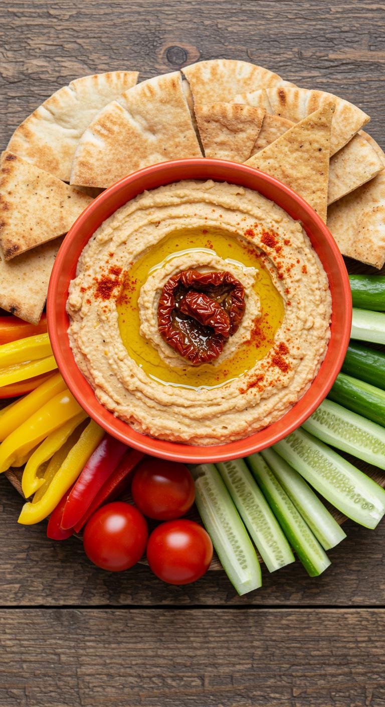 Elevate your snacking game with this zesty Sun-Dried Tomato Hummus that’s bursting with flavor!