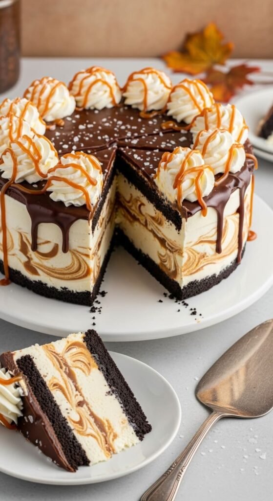 Indulge in a delightful Caramel Swirl Ice Cream Cake that’s as impressive as it’s delicious!