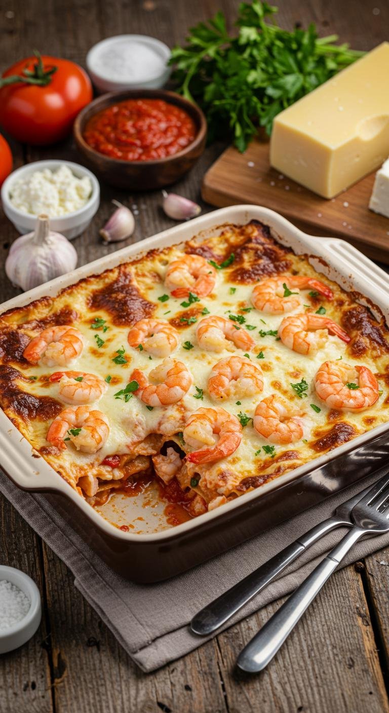 Indulge in a delightful twist on a classic favorite with this Seafood Lasagna featuring succulent shrimp and scallops!