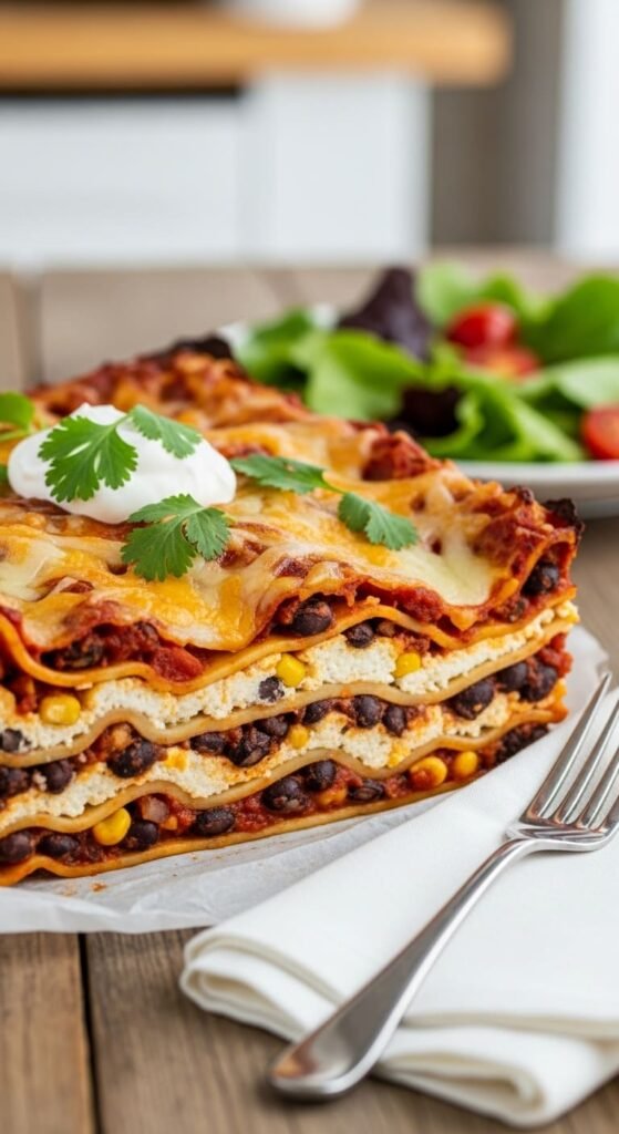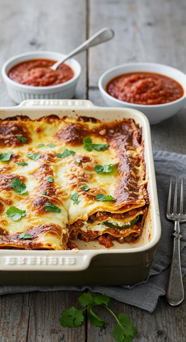 - Let the lasagna cool for a few minutes before slicing. Garnish with fresh cilantro if desired.