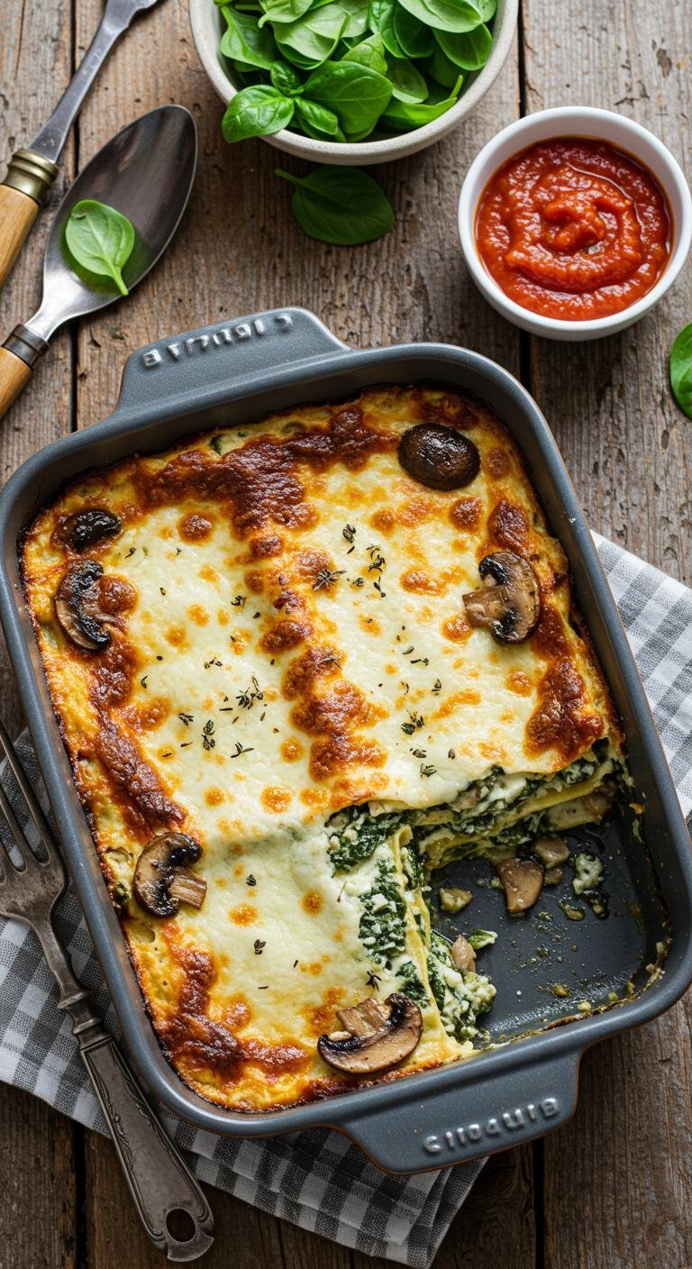 A delicious twist on a classic, this creamy spinach and mushroom lasagna will make your taste buds dance!