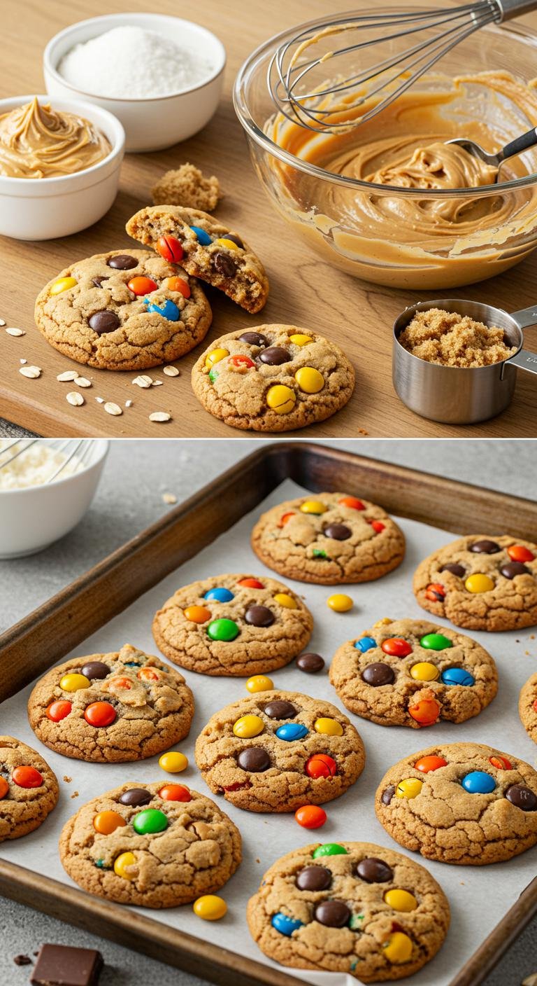 Enjoy these delightful monster cookies warm with a glass of milk for a treat that’s simply irresistible!