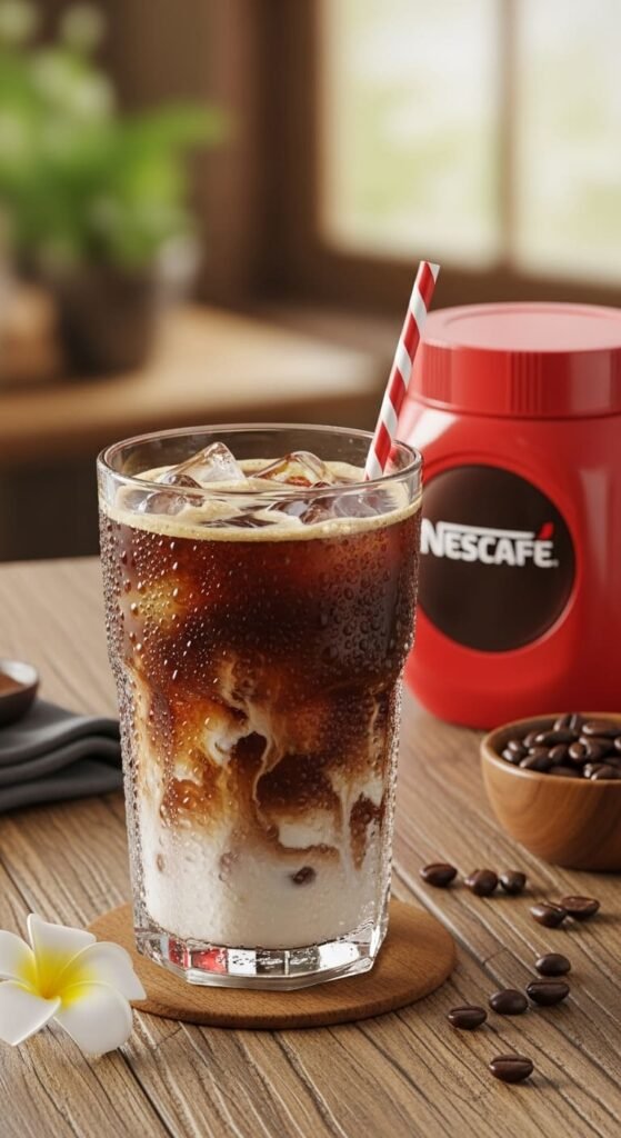 Enjoy your deliciously revitalizing Classic Nescafe Iced Coffee—perfect for a sunny day or whenever you need a pick-me-up!