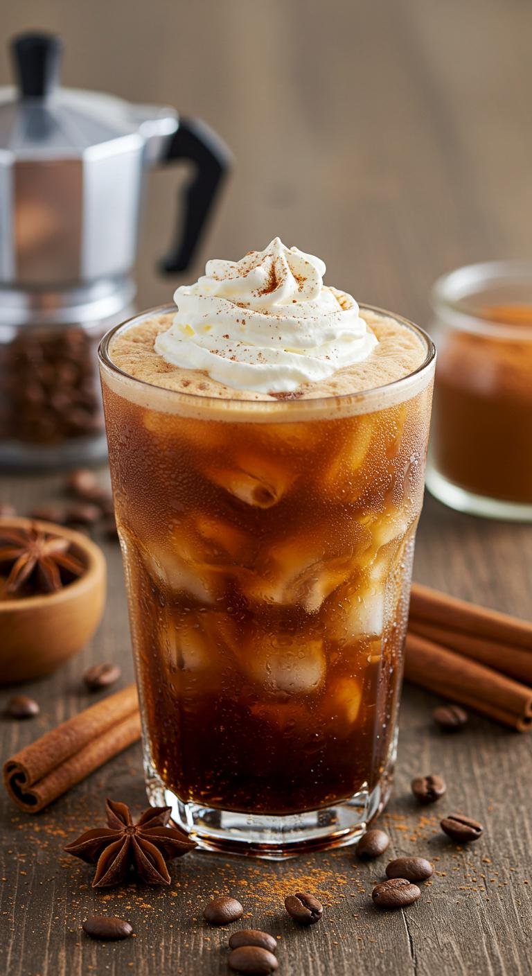 - Once chilled, fill a glass with ice cubes and pour in the spiced coffee mixture.