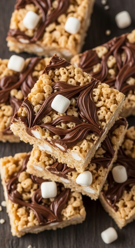 Indulge in a campfire classic with a delightful twist—S’mores Rice Krispie Treats!