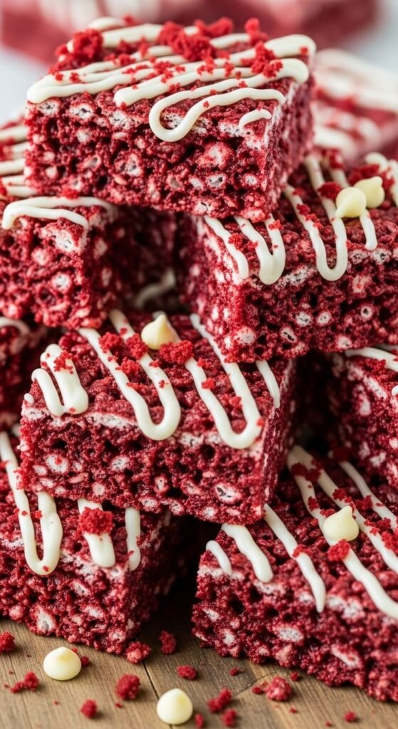 Indulge in the festive flavors of Red Velvet Rice Krispie Treats, where classic meets a delicious twist!