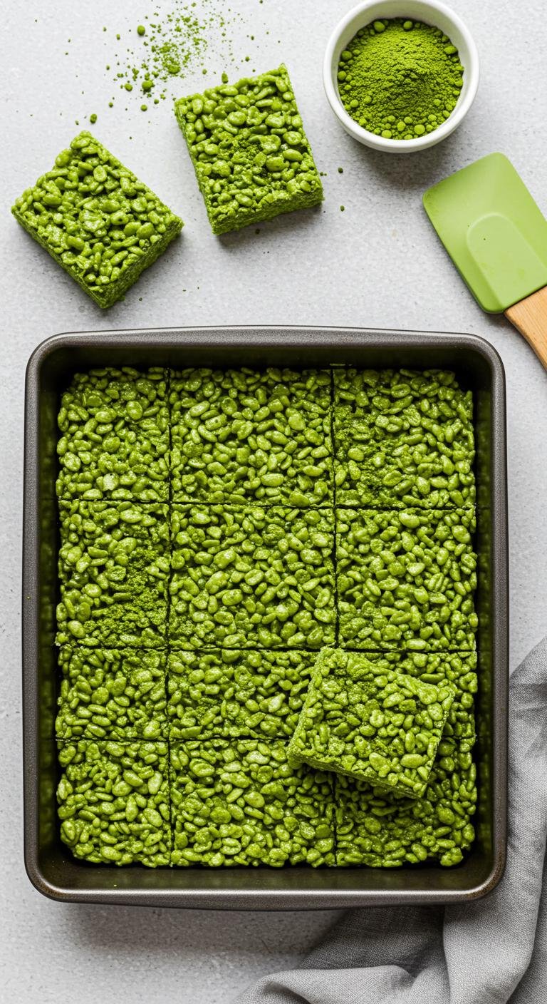 Enjoy these vibrant treats that combine the nostalgic crunch of Rice Krispies with the unique flavor of matcha!