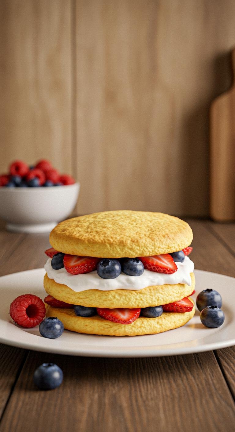 7. To assemble, slice the shortcakes in half, layer with mixed berries, and top with a generous dollop of whipped cream.