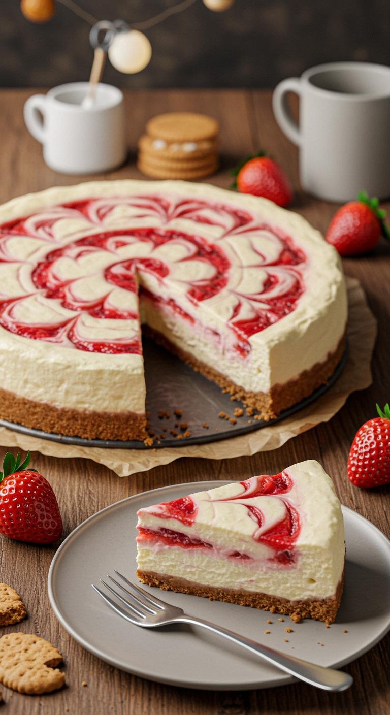 Indulge in the creamy bliss of Strawberry Swirl Cheesecake, where rich cheesecake meets delightful strawberry swirls!