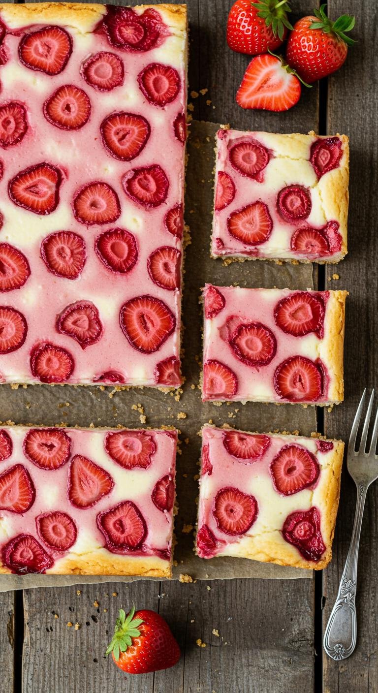 Enjoy every creamy, fruity bite of these delightful Strawberry Cheesecake Bars – they’re sure to be a hit!