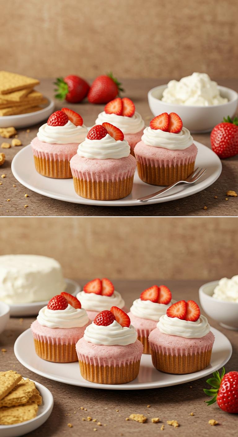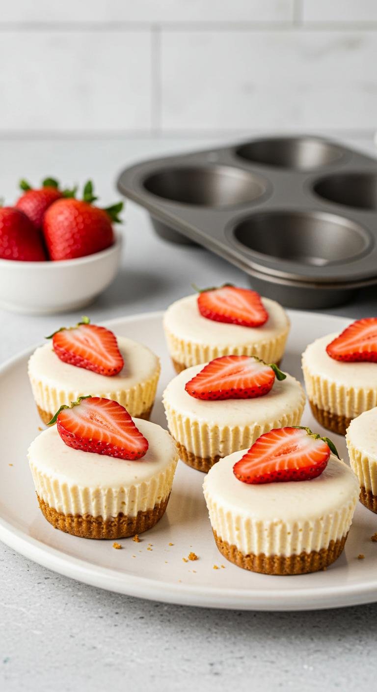 - Top each mini cheesecake with a fresh strawberry before enjoying!