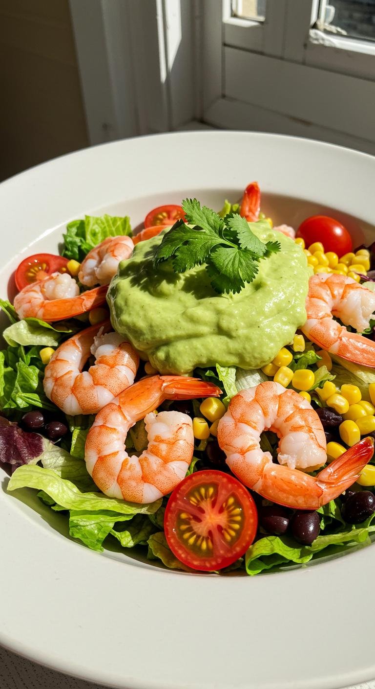 Shrimp Taco Salad With Avocado Dressing