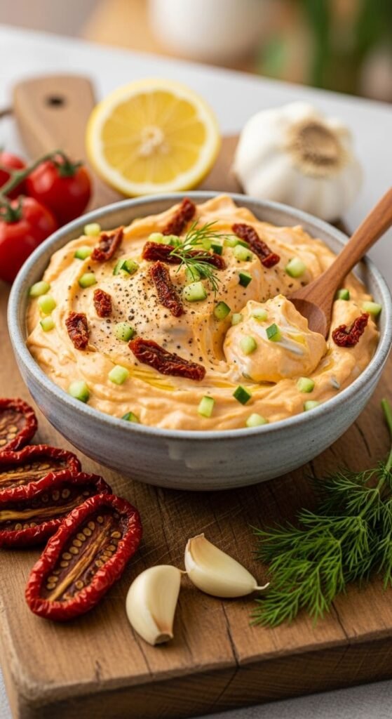 Get ready to elevate your dip game with this delightful Sun-Dried Tomato Tzatziki!