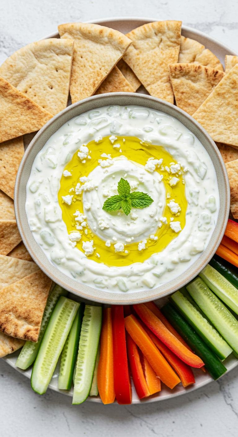 Serve this delightful Mint and Feta Tzatziki with pita chips or fresh veggies, and watch it disappear in no time! Enjoy!