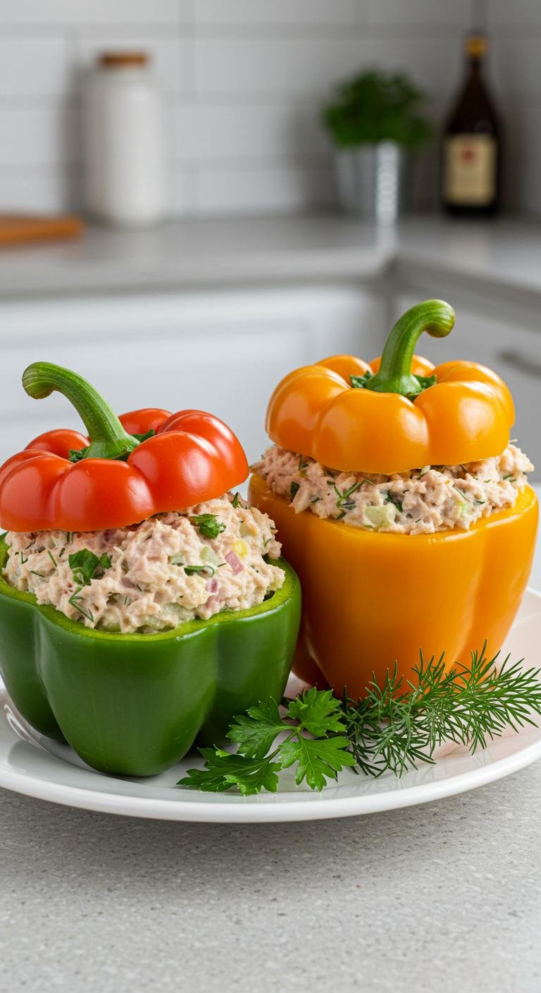 Tuna Salad Stuffed Bell Peppers: A colorful and nutritious twist on a classic dish that’s perfect for lunch or dinner!