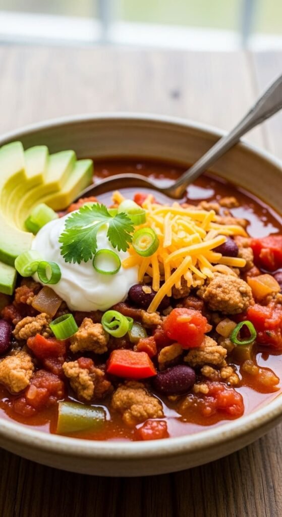 Dig in and enjoy a bowl of warmth and flavor—this turkey chili is sure to become a new favorite!
