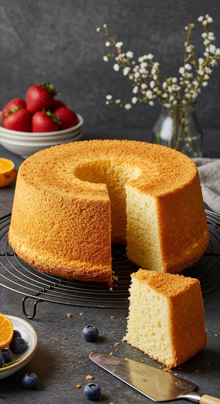 Enjoy a slice of this airy chiffon cake, perfect for any occasion or simply as a sweet treat!