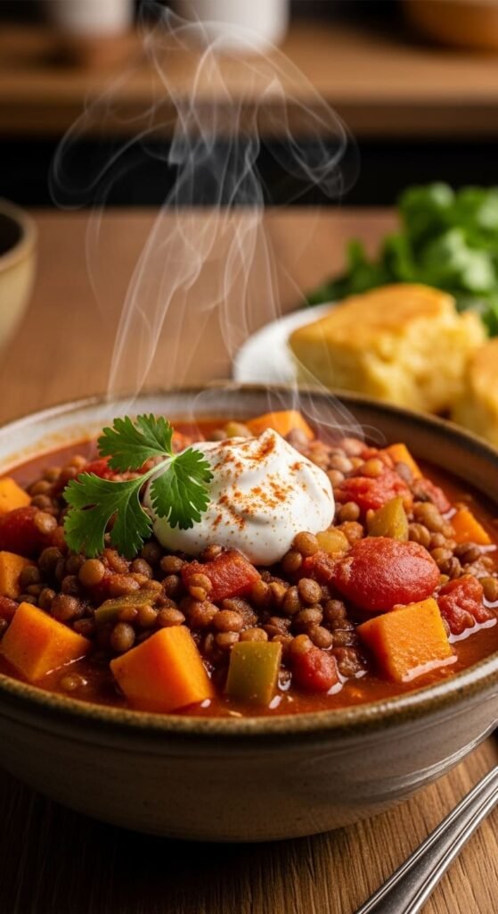Get ready to warm your soul with this hearty Sweet Potato and Lentil Chili, packed with flavor and goodness!