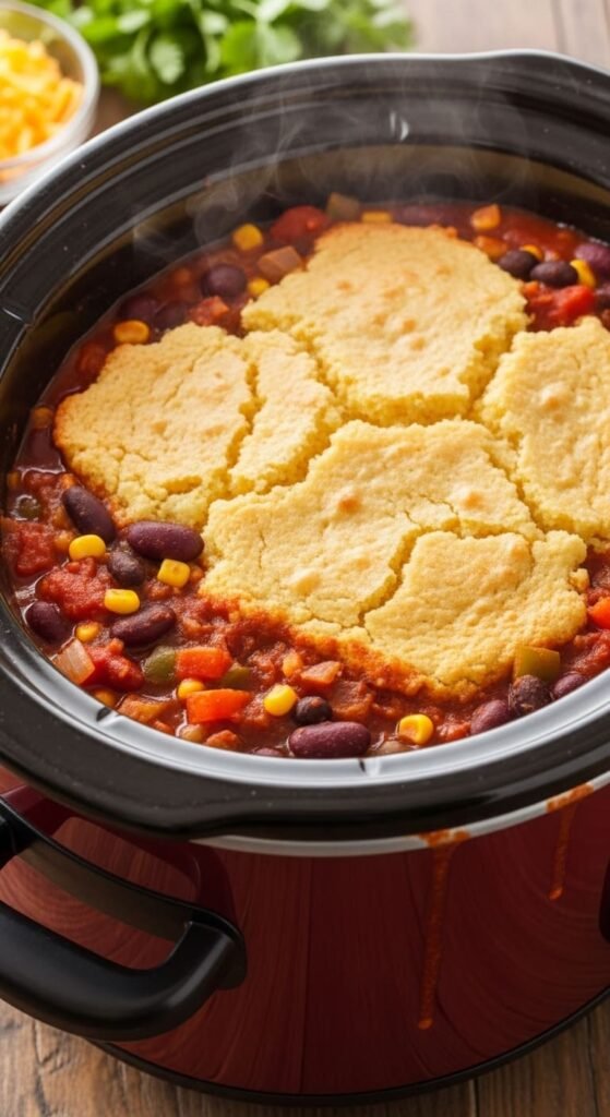 Slow Cooker Vegetarian Chili With Cornbread Topping