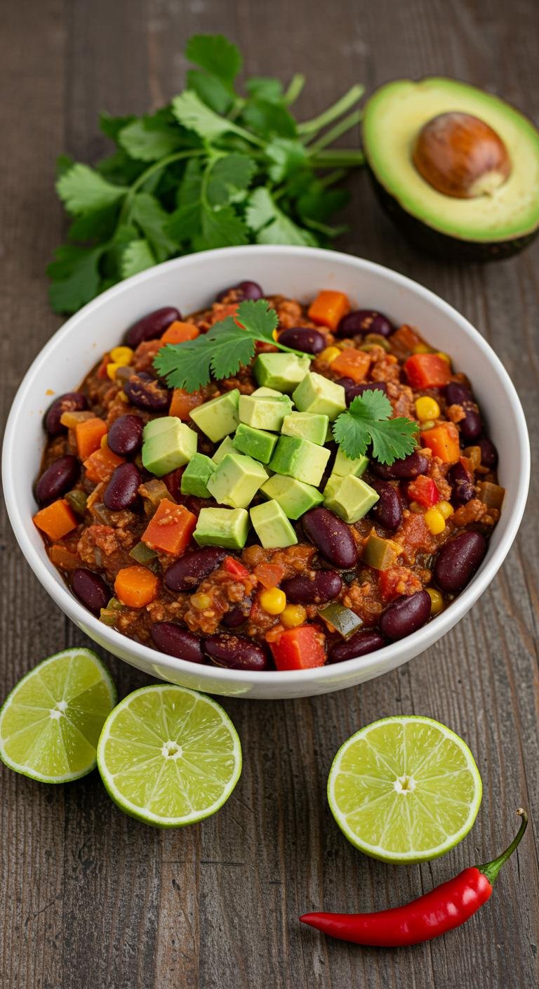 Loaded Vegetarian Chili With Avocado