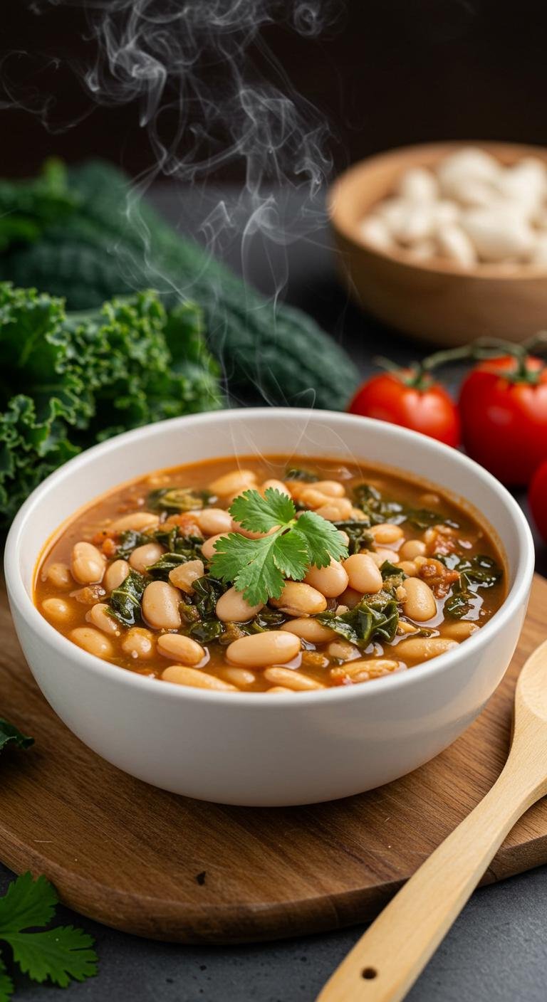 Warm up your taste buds with this hearty White Bean and Kale Chili—perfect for cozy nights in!