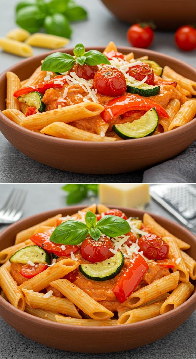 Creamy vodka sauce meets deliciously roasted vegetables for a dish that’s both comforting and vibrant!