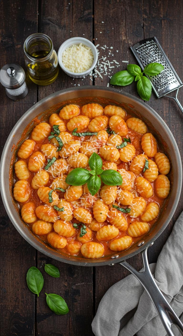 - Add the gnocchi to the skillet, stirring to coat them in the sauce.